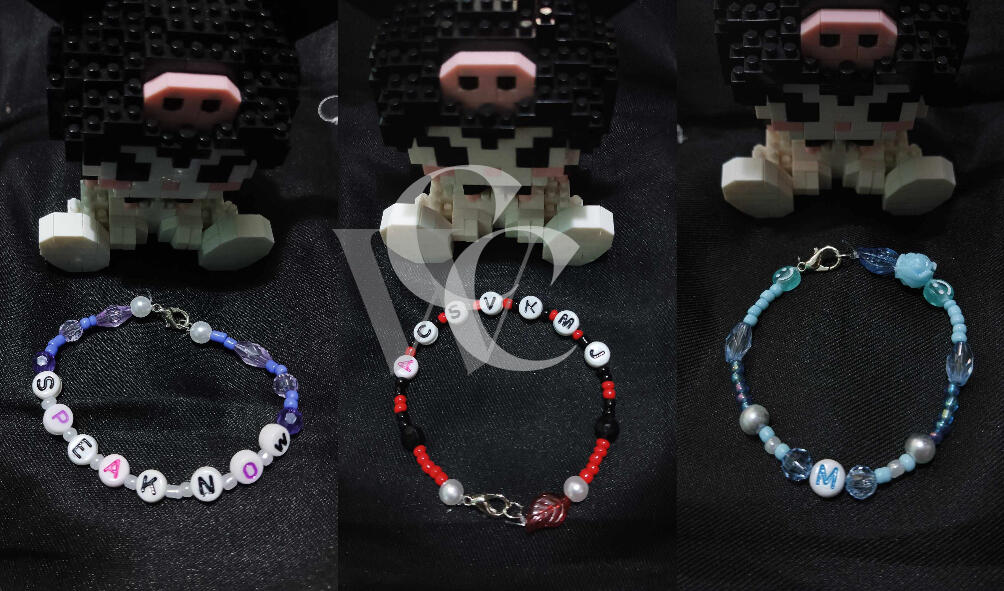 "CustomWear Creation allows you to choose the design you want for your jewelry. You can select as many colors as you wish, along with any names or letters you desire. Additionally, you have the option to choose an artist for your design, for example: Taylor/Speak Now (album) or The Weeknd/Starboy (album). BUY 2 OR MORE TO GET A RANDOM FREE TWICE PHOTO CARD."<3