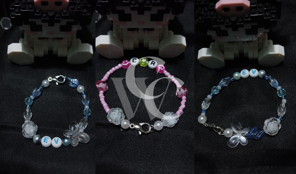 "CustomWear Creation allows you to choose the design you want for your jewelry. You can select as many colors as you wish, along with any names or letters you desire. Additionally, you have the option to choose an artist for your design, for example: Taylor/Speak Now (album) or The Weeknd/Starboy (album). BUY 2 OR MORE TO GET A RANDOM FREE TWICE PHOTO CARD."<3